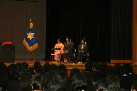 | □ 平成19年度 入会式 平成20年3月3日(火) 12:00 富山いずみ高校 第一体育館 卒業式を明日に控え、準備の整った第一体育館で、中尾淳子清泉同窓会会長をはじめ 副会長、常任理事ら代表役員6名が出席して入会式が行われました。 牧野弥一学校長、先生方全員のご出席のもと、平成19年度卒業生198名が 清泉同窓会に入会されました。 今日入会された総合学科158名、看護科40名の皆さんは、平成17年4月に入学された 富山いずみ高校 第4回入学生(第6回卒業生)です。 中尾淳子会長から「明日いよいよご卒業なさる皆さんを同窓会にお迎えできる ことを心からうれしく思います。清泉同窓会は、富山県立富山高等女学校、富山県立 富山女子高校と富山県立富山いずみ高校の3つの学校の卒業生の同窓会です。 清泉同窓会は今年5月に第50回の総会を迎える歴史と伝統のある同窓会です。 わたくしは今、自分自身の卒業の日と今日の皆さんの姿を重ね合わせて感慨深く思って おります。学校で過ごした日々がわたくしの根っことなり、人生の時どきに心の支えとなりました。 皆さんは明日、この学び舎を巣立っていかれるわけですが、同じ学校で学んだ絆を大切に 誇りをもって歩んでいっていただきたいと思います。」との餞(はなむけ)の言葉が 贈られました。 また、5月の総会に出席していただきたいことや秋には研修旅行を実施していること、 「清泉同窓会の公式ホームページ」が開設されていることなど清泉同窓会の活動紹介が ありました。 |