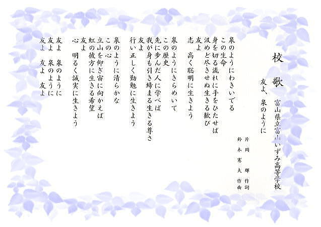 | 「友よ、泉のように」は、富山いずみ高校のホームページで聴くことができます。 |